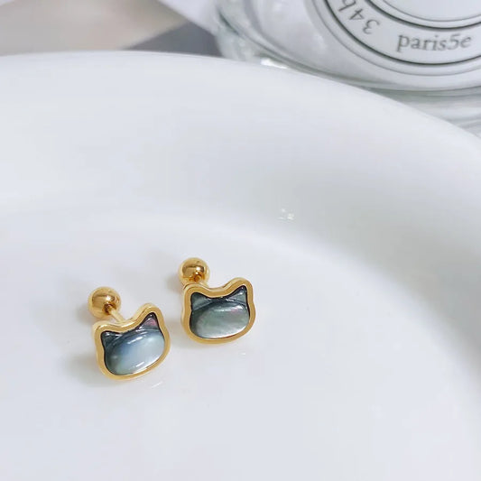 1 Pair Cute Cat Inlay Titanium Steel Shell Ear Studs